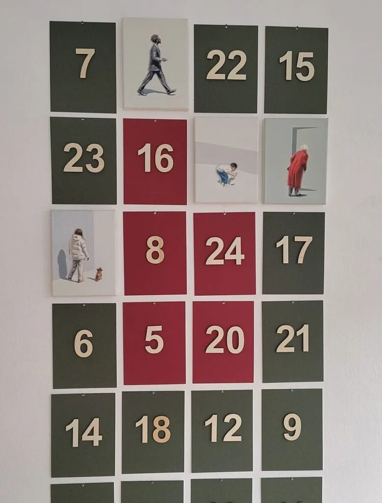 Am 24. Dezember fügen sich die kleinformatigen Bilder zu einem Gesamtbild alltäglicher Begegnungen wie sie jedem von uns schon gewahr wurden und nun erneut in Erinnerung gerufen werden