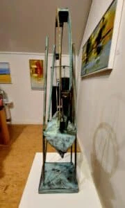 Im Zentrum des Werkes von Basilius Kleinhans stehen Themen spiritueller, mythologischer und philosophischer Natur. Besonders das Motiv des Bootes nimmt darin eine bedeutende Rolle ein. In seiner essenziellen Form wird es zum Sinnbild für Übergänge, für Aufbruch und Veränderung. Mit Blattgold belegt holt es antike Mythen in die Gegenwart: Das Sonnenboot, das das Licht über das Wasser trägt, kann in heutigen Zeiten als eine Geste der Zuversicht verstanden werden.