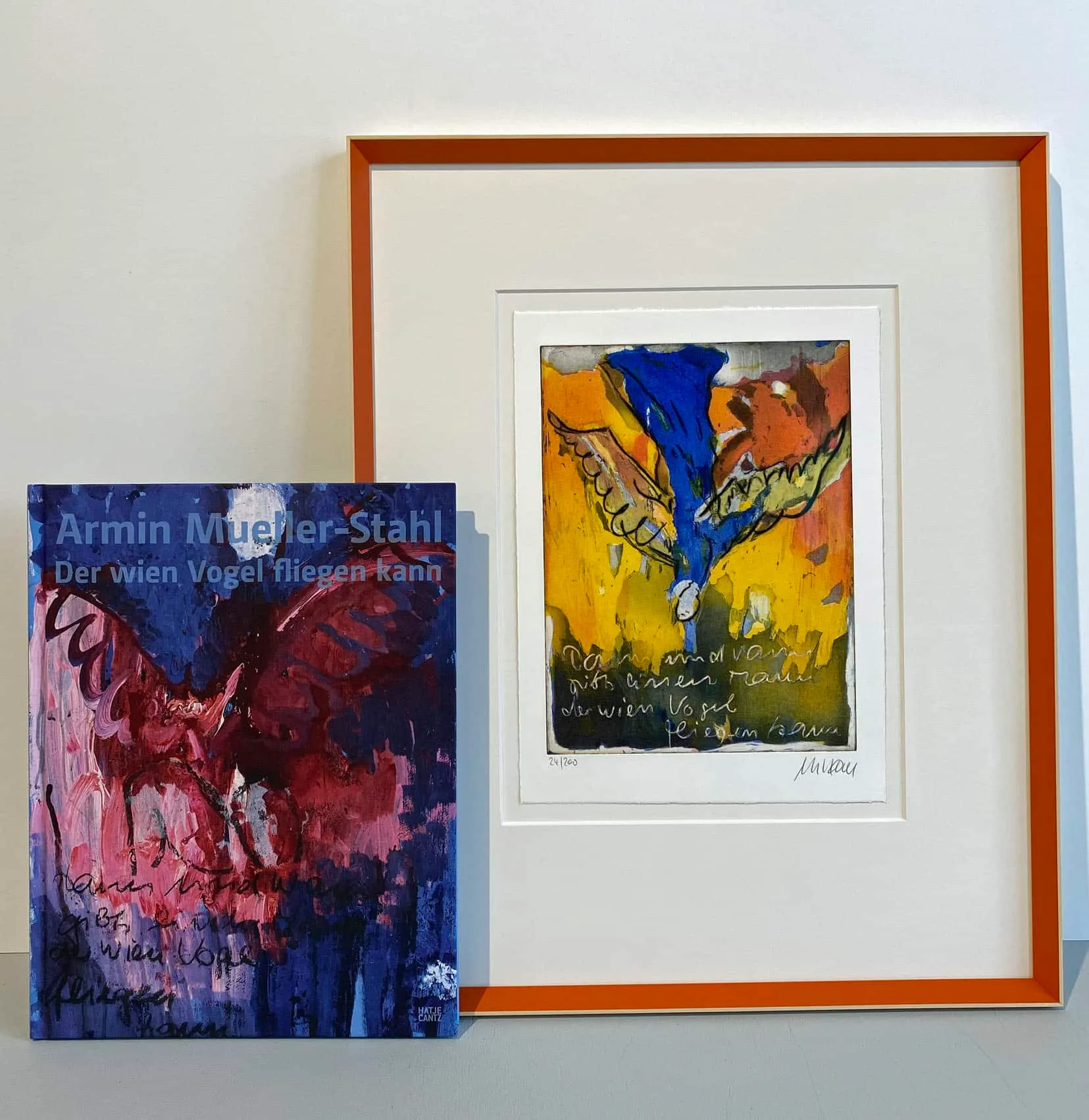 Bild 1: „…der wien Vogel fliegen kann“, 2018, Vorzugsgrafik 24/200 gerahmt mit Buch, € 620.-