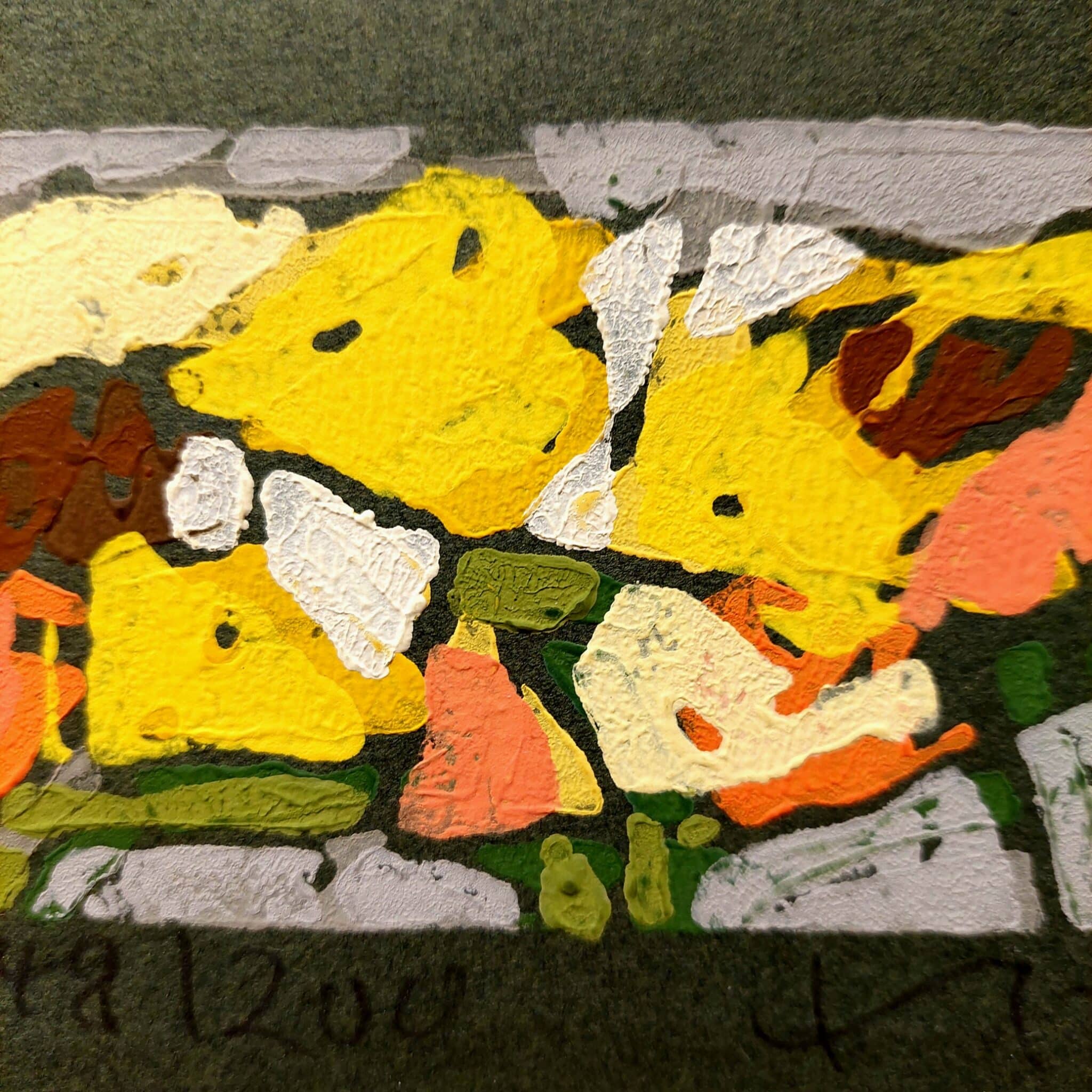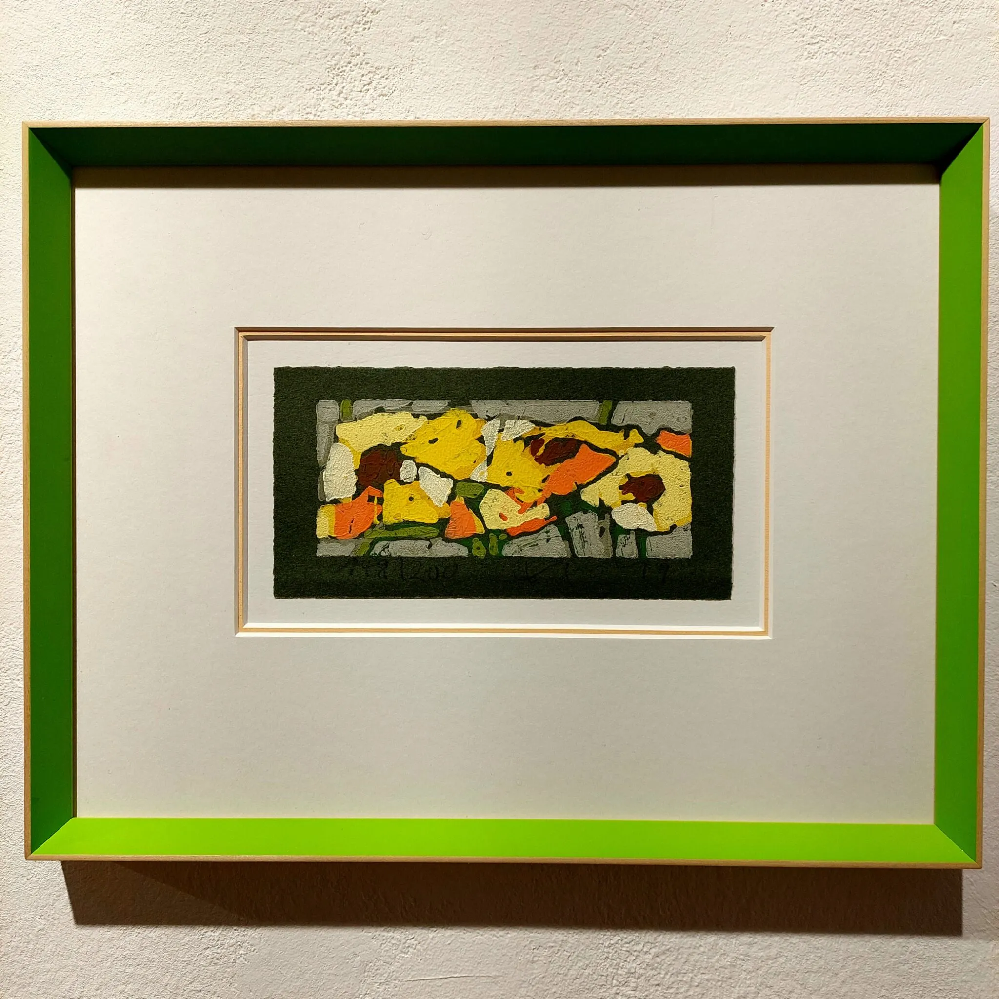 Fußmann zählt zu den bedeutendsten deutschen Gegenwartskünstlern, und besonders seine Blumenmotive haben eine unverwechselbare Handschrift. In diesem Linolschnitt leuchten die gelben Rosen kraftvoll und klar – reduziert in der Form, stark in der Farbe, voll unmittelbarer Präsenz. Die typische Fußmannsche Kombination aus Einfachheit und Ausdruck macht dieses Werk zu einem kleinen Fest der Farbe.