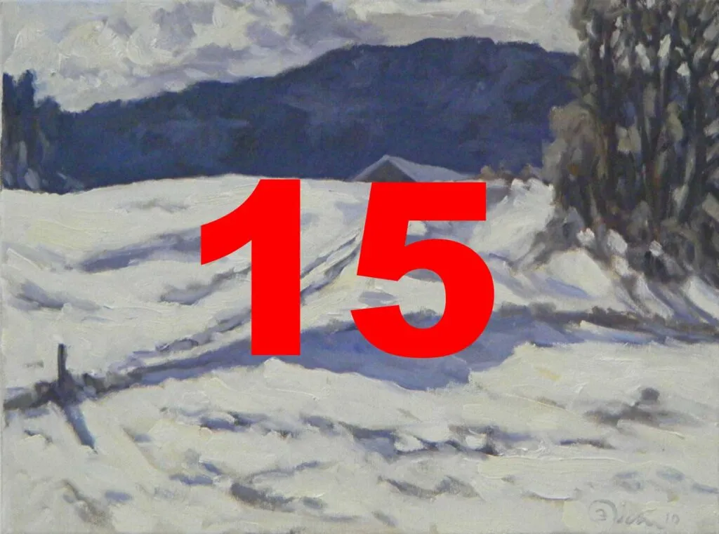 Heute öffnet sich ein heiter-verspieltes Adventstürchen: ein Werk von Erhard Dietl, das einen Mann zeigt, der auf seiner Nase einen Hut balanciert.