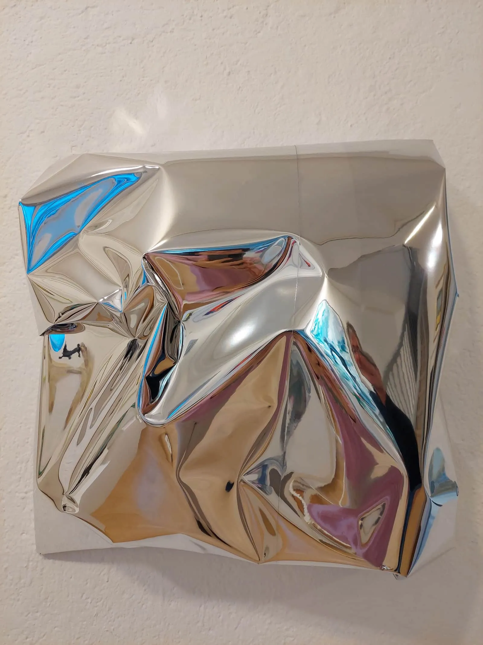 Im Fokus unserer kommenden Ausstellung sind Bilder, Wandobjekte und Skulpturen, deren Wirkung vor allem auf Licht, Spiegelungen, Reflexionen und glänzenden Oberflächen beruht. Es ist spannend zu sehen, wie die Künstlerinnen und Künstler mit verschiedensten Materialien spielen.