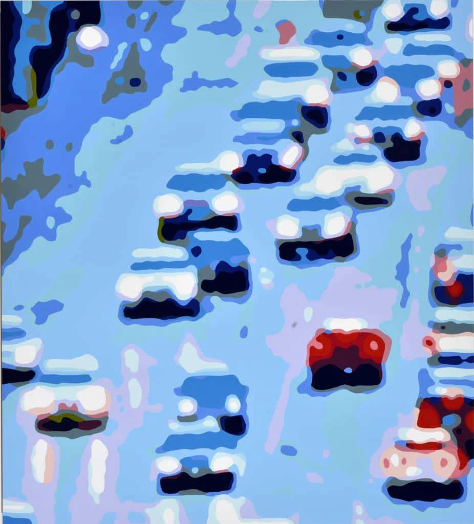Neu in unser künstlerisches Programm haben wir Kunstwerke von Konrad Winter aufgenommen. Er malt mit Autolacken auf Aluminium. Die Bilder sind in der Regel großformatig und in leuchtenden Farben angelegt. Steht der Betrachter unmittelbar vor dem Werk, so erkennt er lediglich scharf voneinander abgegrenzte Farbflächen. Erst mit Abstand erschließt sich der Bildinhalt. Auch wirken die Bilder aus der Nähe stets unscharf oder verschwommen, wie durch eine Brille mit falscher Dioptrinstärke betrachtet.