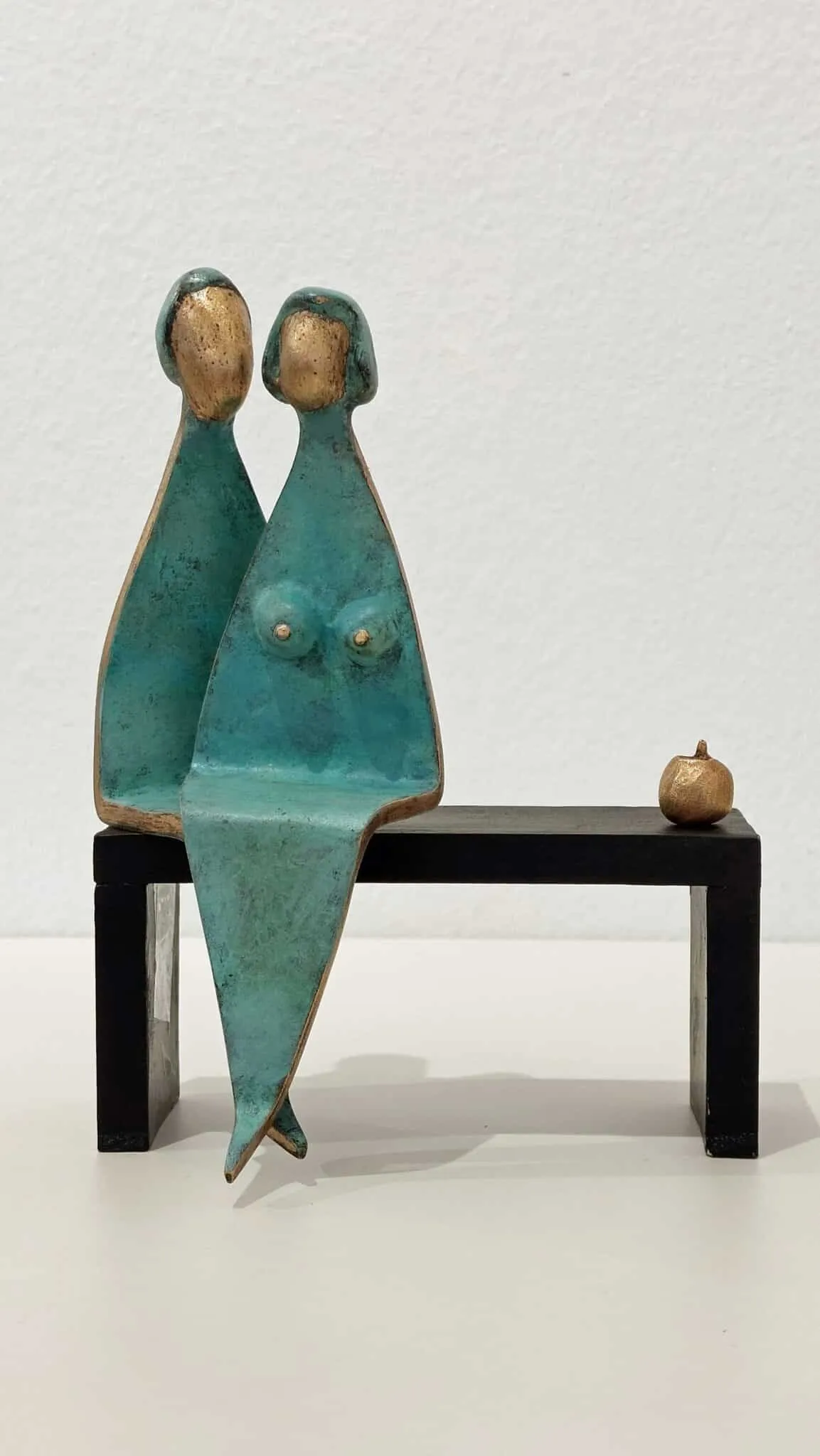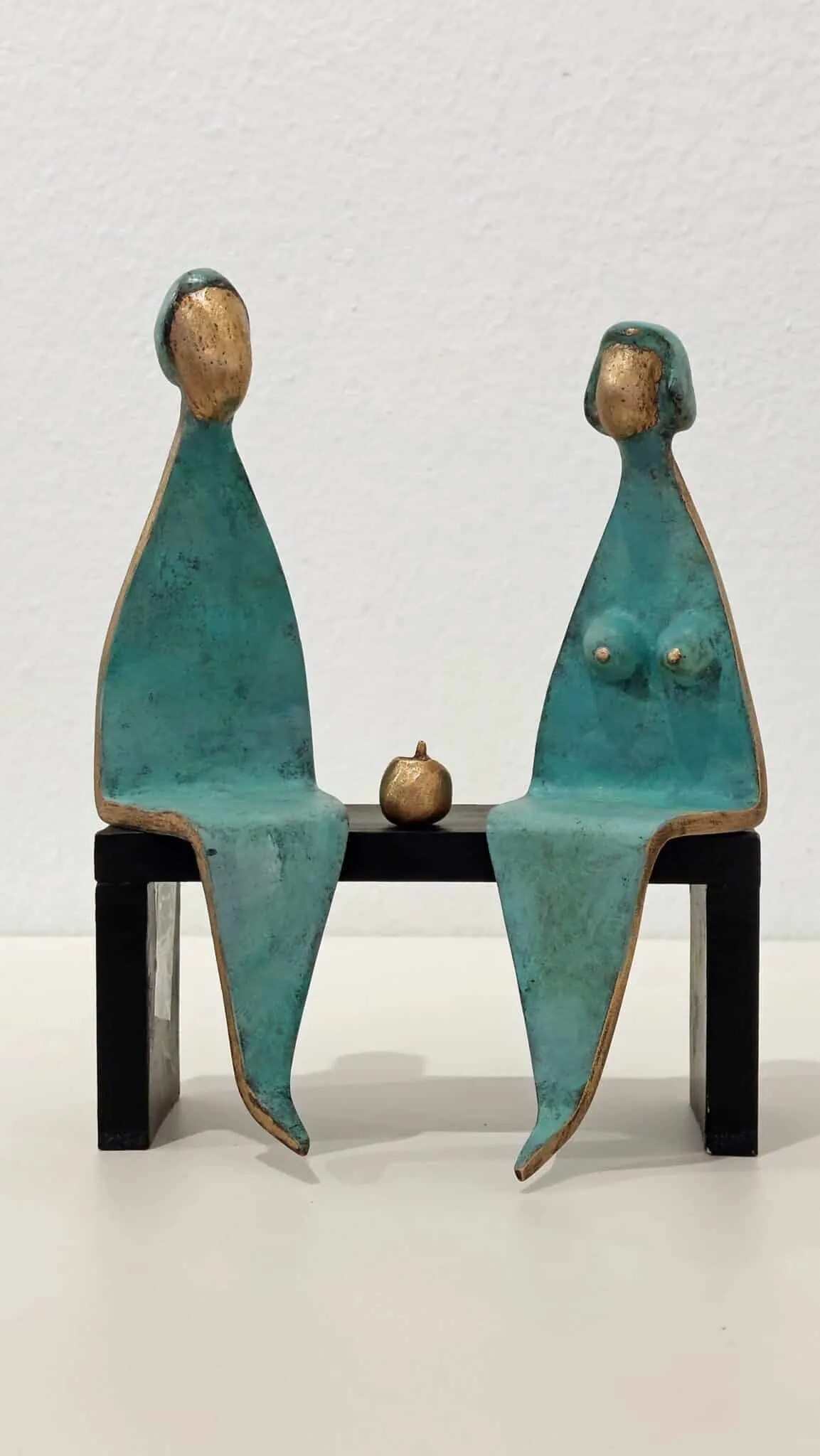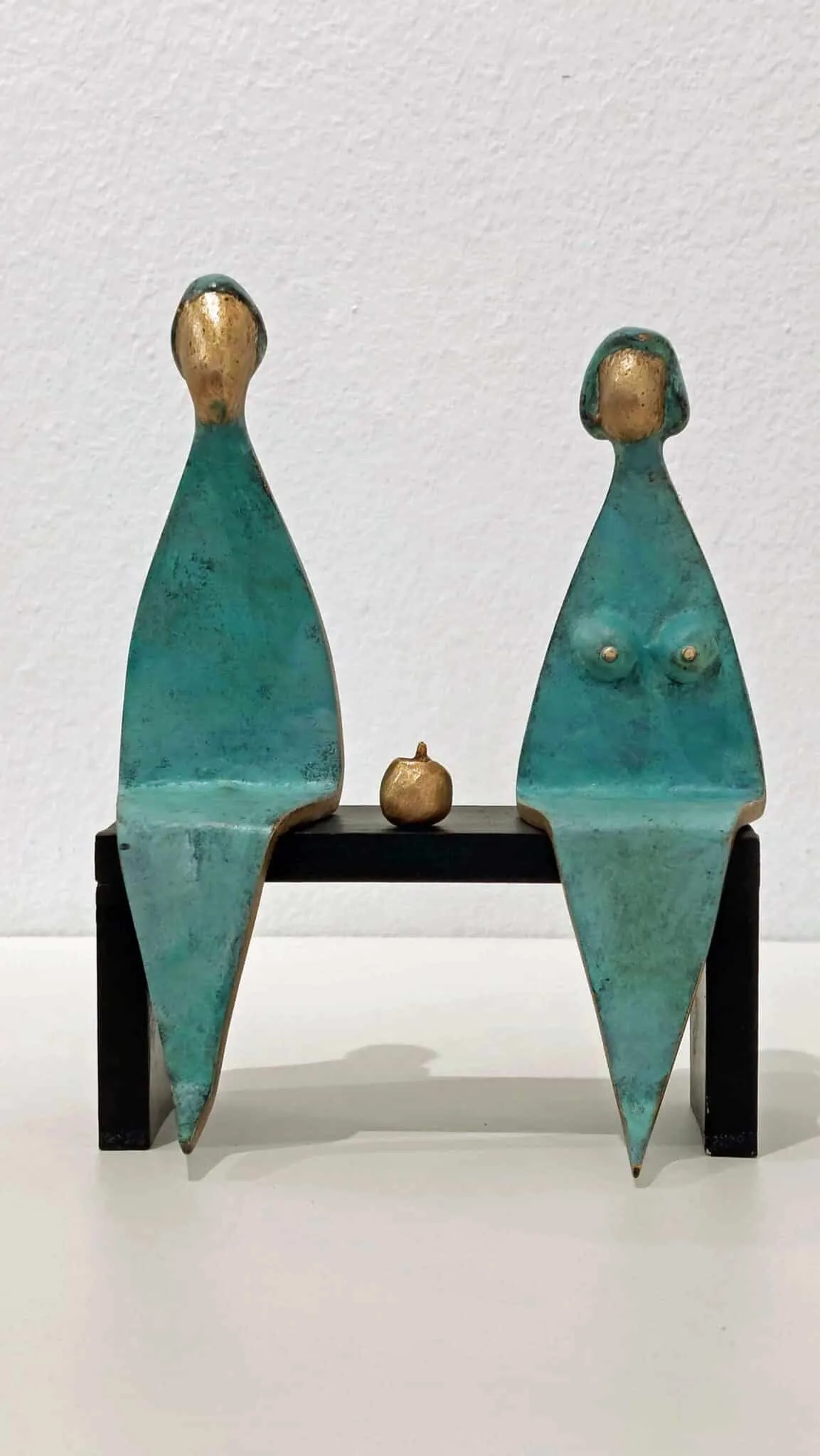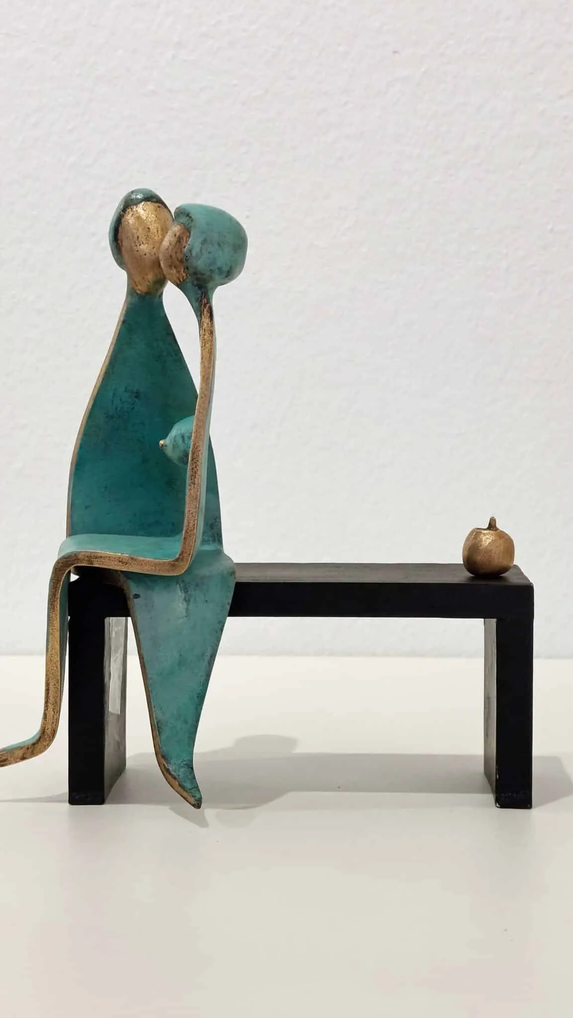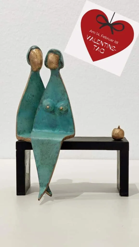 Das Liebesbarometer lädt dazu ein, die Bronzefiguren nach Lust und Laune auf dem Bänkchen zu positionieren!