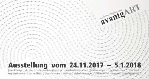 Vom 24. November zum 5. Januar 2018 zeigten wir zahlreiche Objekte und Installationen international renommierter, aber auch aufstrebender Künstlerinnen und Künstler. Die hinsichtlich Größe und inhaltlicher Aussage unterschiedlichsten Arbeiten faszinierten durch ihre individuellen Wirkungen. Die Konzentration auf das Genre ermöglichte es den Besuchern, die Vielfalt zeitgenössischer Entwicklungen von Objekten, Skulpturen und Installationen nachzuempfinden.