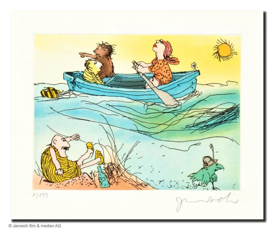 Janosch Es schwankt das Meer, die Sonne sinkt ... Farbradierung Auflage 199 Ex. mit Passepartout 40 x 50 cm