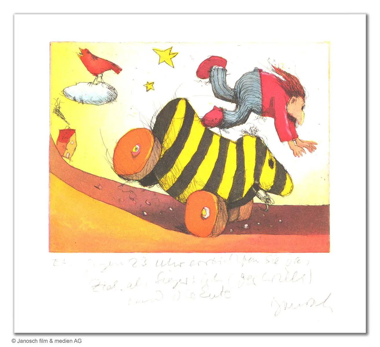 Janosch Gegen 23 Uhr erreichten wr das Ziel Farbradierung Auflage 199 Ex. mit Passepartout 40 x 50 cm