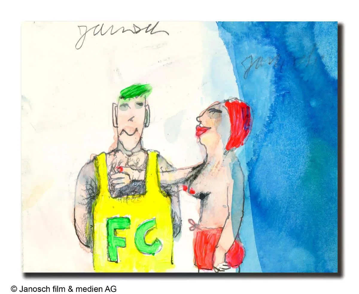 Janosch Ich mit Horst Beckmann Mischtechnik/Papier mit Passepartout 35 x 35 cm Unikat