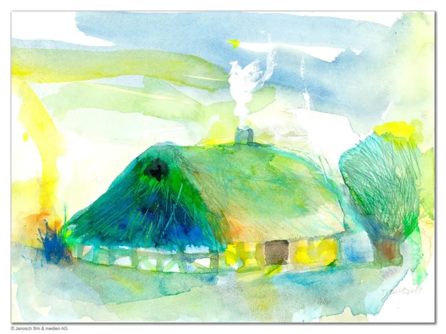 Janosch Schönes Haus Juchhee Mischtechnik/Papier im Weißgoldrahmen 40 x 50 cm Unikat verkauft
