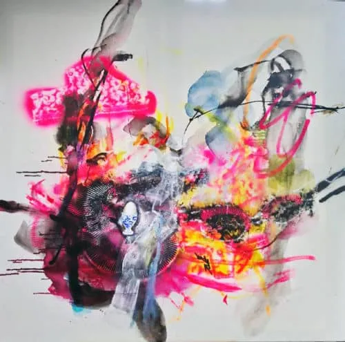 Monika Kaiblinger Frühstück danach, Rosa Öl/Leinwand