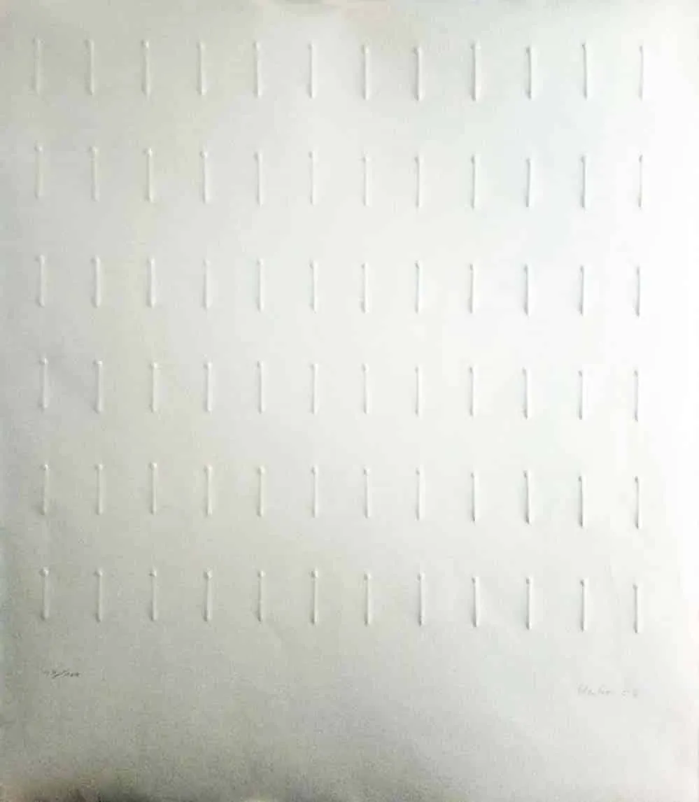 L22418 Uecker, Prägedruck Parallele Reihung 1968, 54v100 78x66cm 17500