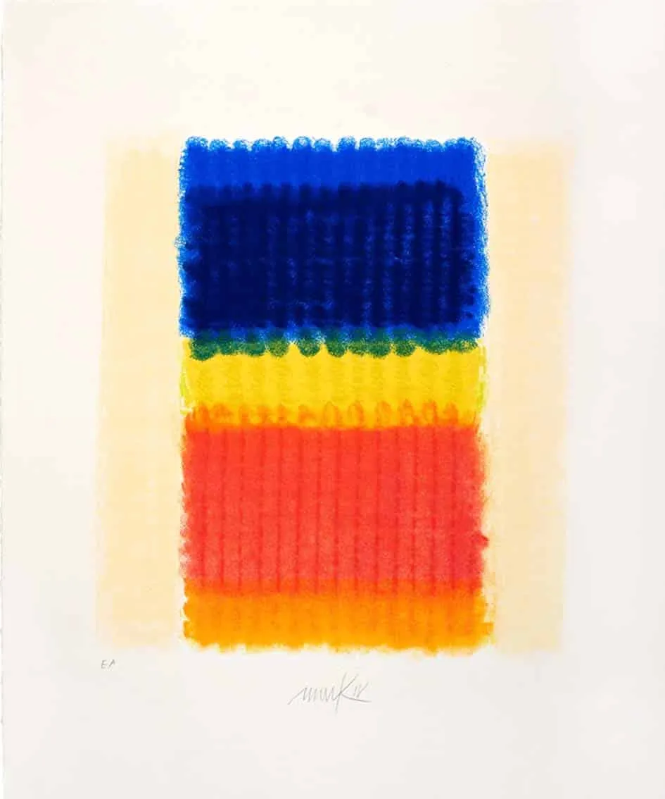 Heinz Mack Blau begegnet Rot, 2018 Siebdruck mit 15 Sieben Aufl. 35/70 60 x 50 cm