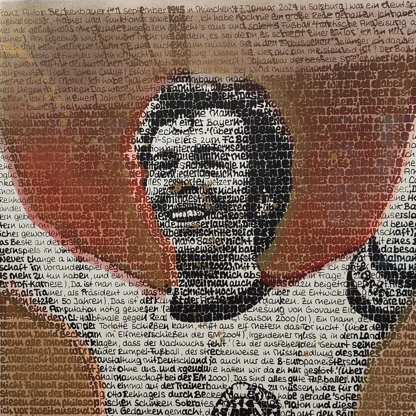 SAXA Franz Beckenbauer - Lichtgestalt Mixed Media/Pigmentdruck auf Karton je 20 x 20 cm signiert und datiert Overpainting