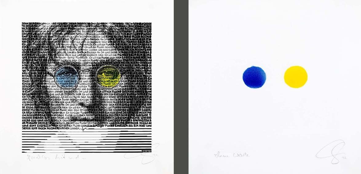 SAXA John Lennon - Sprachlos Ukraine Diptychon Mixed Media/Pigmentdruck auf Karton je 20 x 20 cm signiert und datiert Overpainting