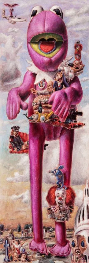 Andreas Schiller Global Backup II /6a Frosch Lila Stehend Öl auf Leinwand