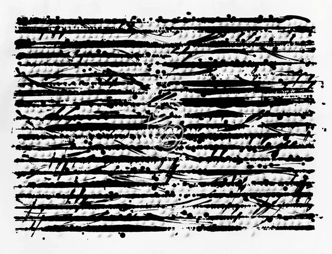 Günther Uecker Optische Partitur - Mozart Prägedruck mit Lithografie Maße 68,5 x 90 cm