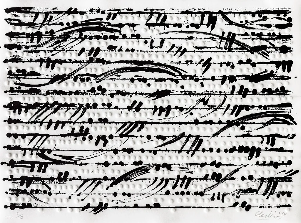 Günther Uecker Optische Partitur III, 2014 Prägedruck und Lithografie Maße 66,5 x 90 cm