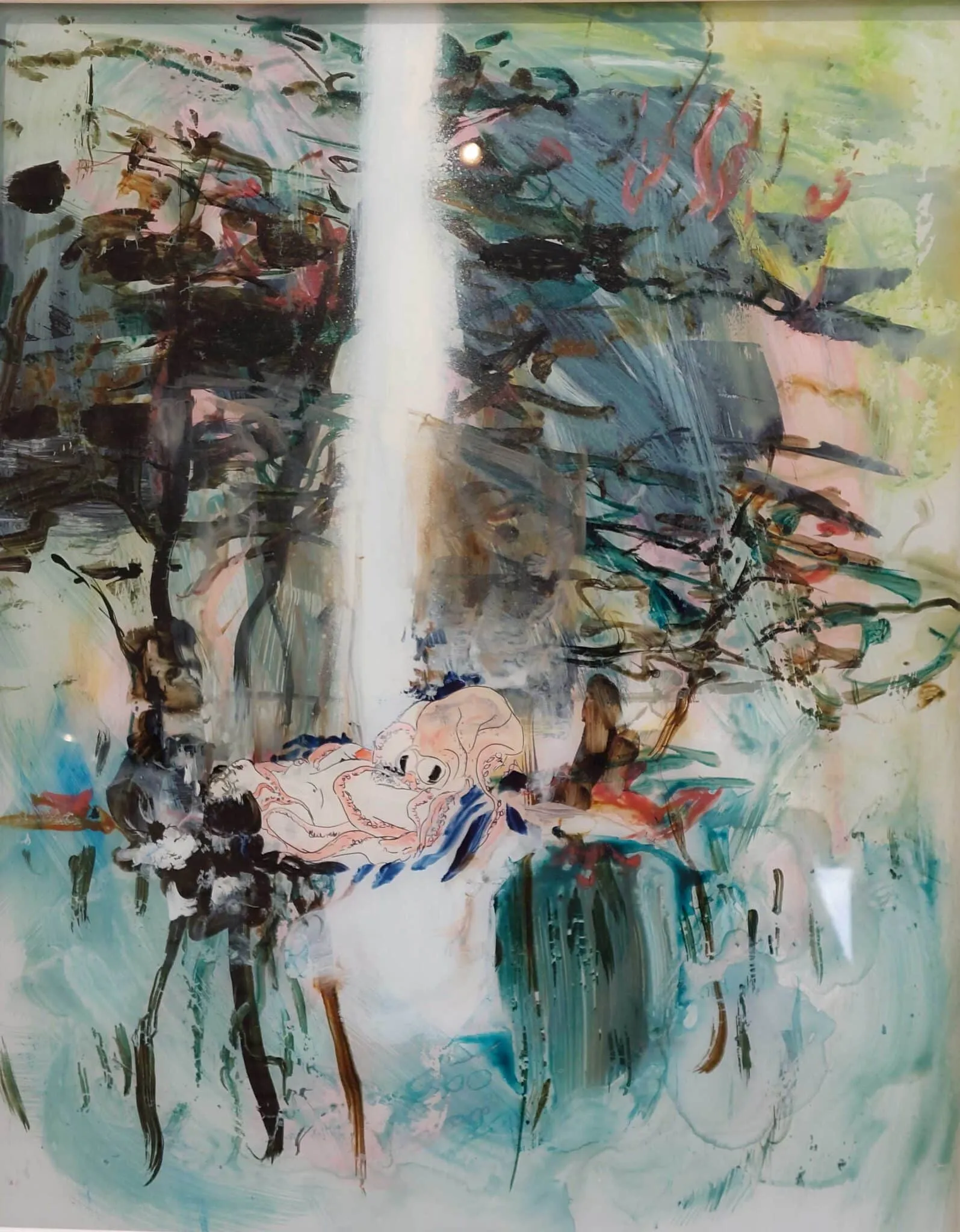 Monika Kaiblinger Octopus Acryl auf Glas Maße 50 x 40 cm