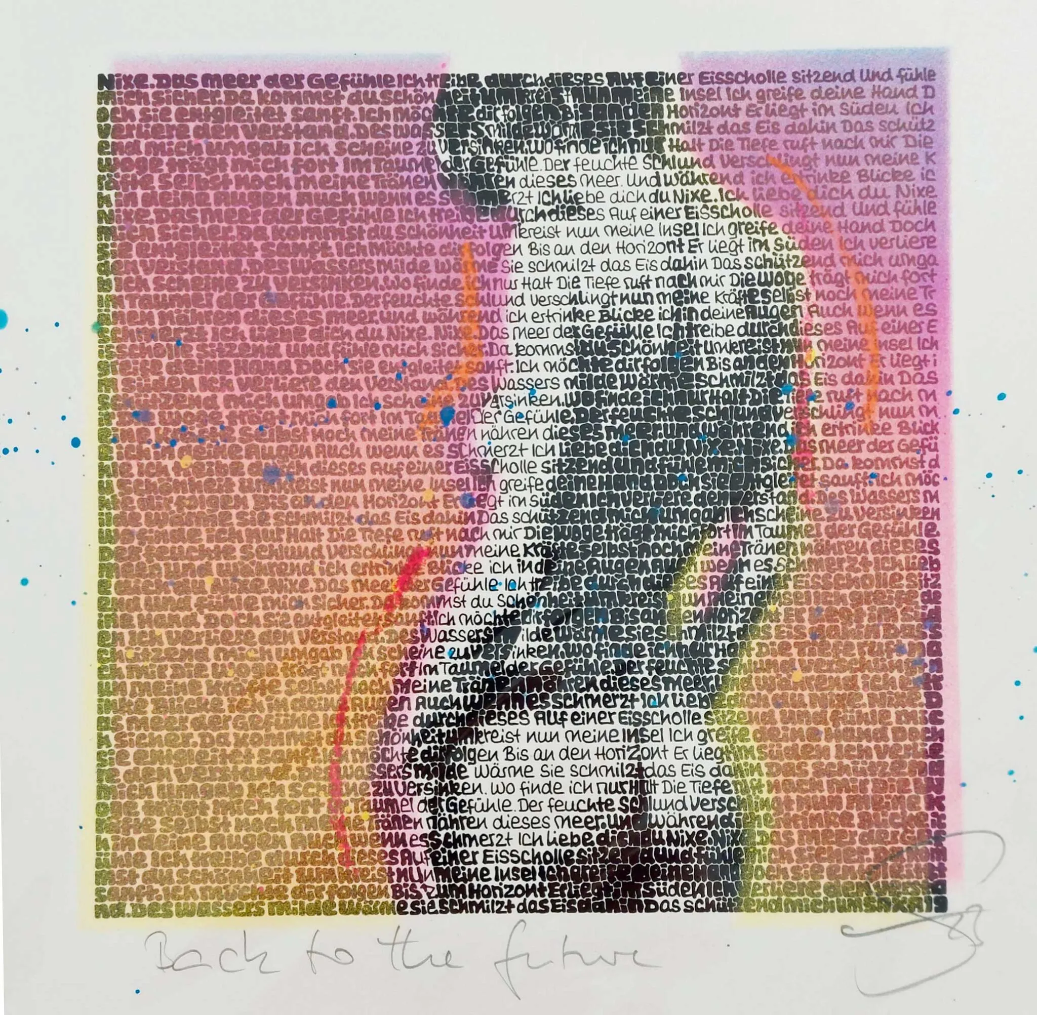 SAXA Back to the future Mixed Media/Pigmentdruck auf Karton je 20 x 20 cm signiert und datiert Overpainting