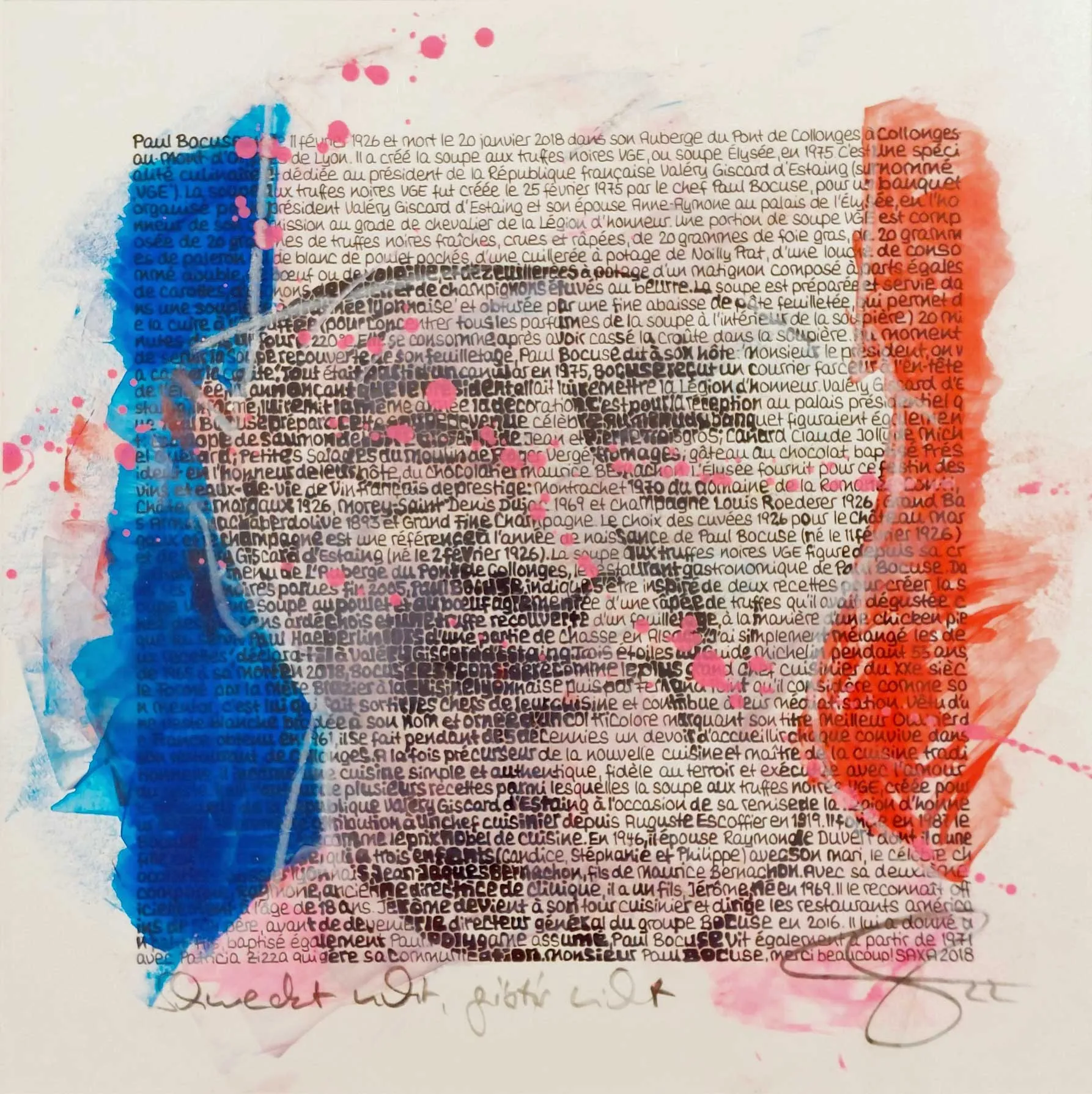 SAXA Paul Bocuse - Schmeckt nicht, gibt´s nicht Mixed Media/Pigmentdruck auf Karton je 20 x 20 cm signiert und datiert Overpainting