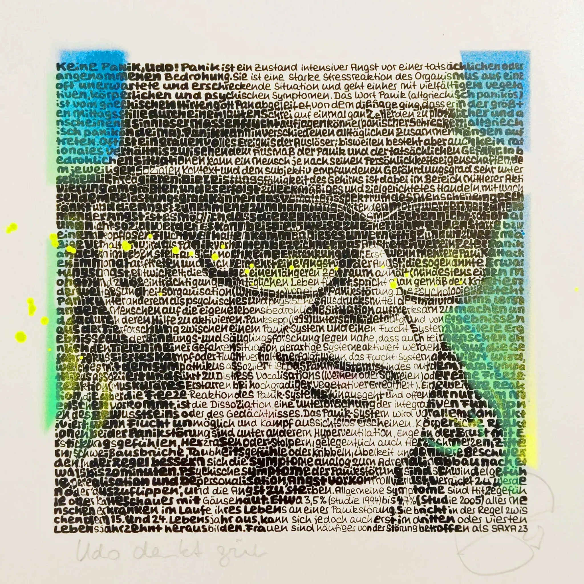 SAXA Udo Lindenberg - Udo denkt grün Mixed Media/Pigmentdruck auf Karton je 20 x 20 cm signiert und datiert Overpainting