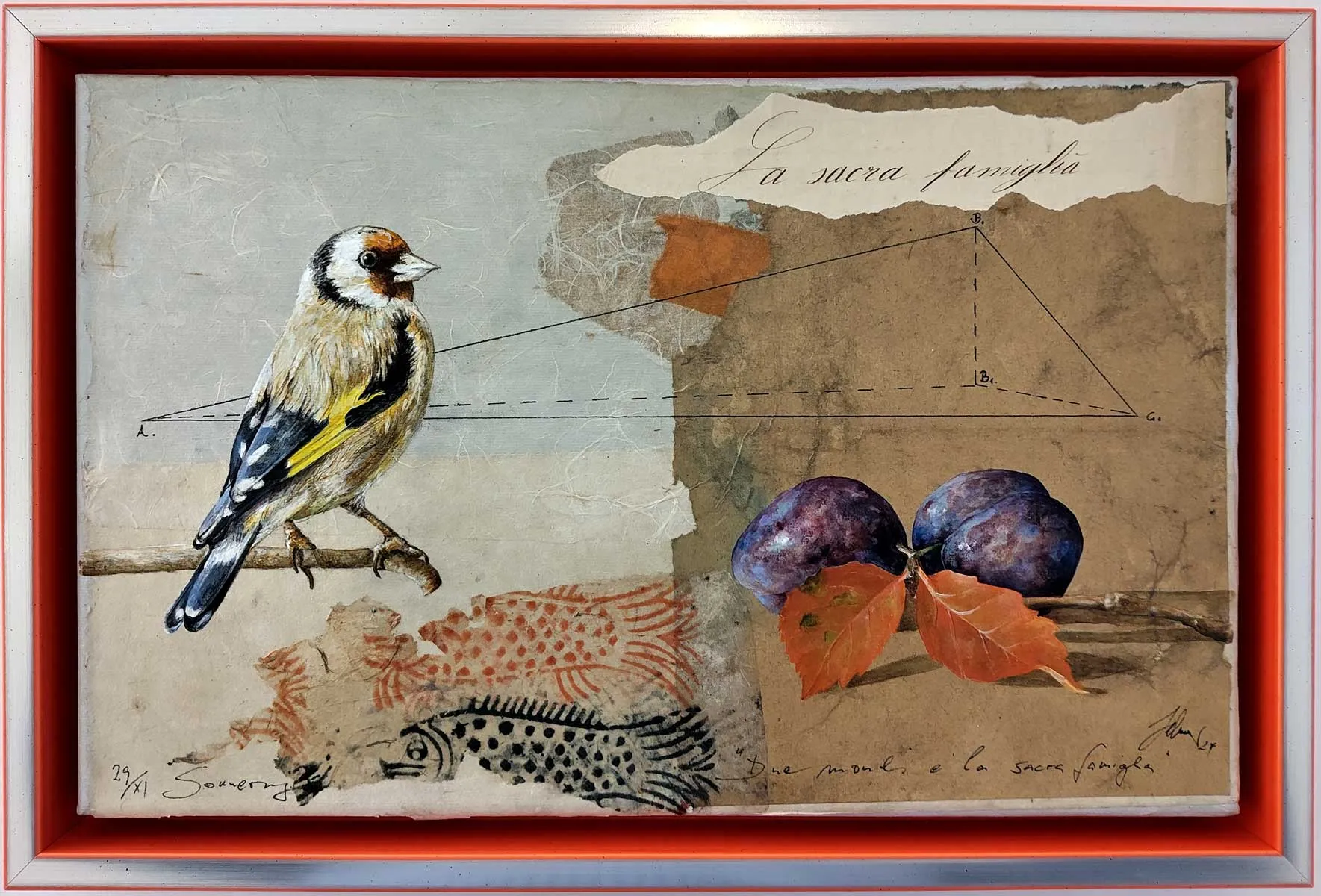 Wolfgang Zelmer Due mondi e la sacra famiglia Mischtechnik/Leinwand 24 x 38 cm Unikat